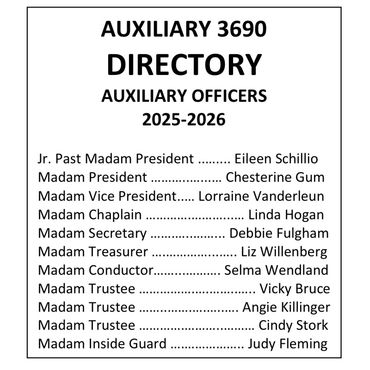 If you have any questions about membership, contact Aerie secretary John Harper at (586) 431-4372, or Auxiliary secretary Deborah Fulgham at (989) 551-5702.